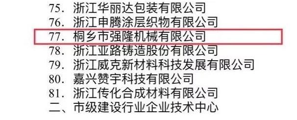 L'ufficio del governo popolare municipale di Jiaxing ha chiaramente sottolineato che al fine di attuare ulteriormente la strategia di sviluppo guidata dall'innovazione, rafforzare la costruzione di sistemi di innovazione tecnologica aziendale, migliorare le capacità e i livelli di innovazione tecnologica delle imprese e promuovere la trasformazione e l'aggiornamento economici. Pertanto, il governo popolare municipale di Jiaxing ha valutato 84 imprese come Jiaxing Municipal Enterprise Technology Center 2017. È un onore che la nostra azienda-Tongxiang Qianglong Machinery Co., Ltd. sia nella lista.